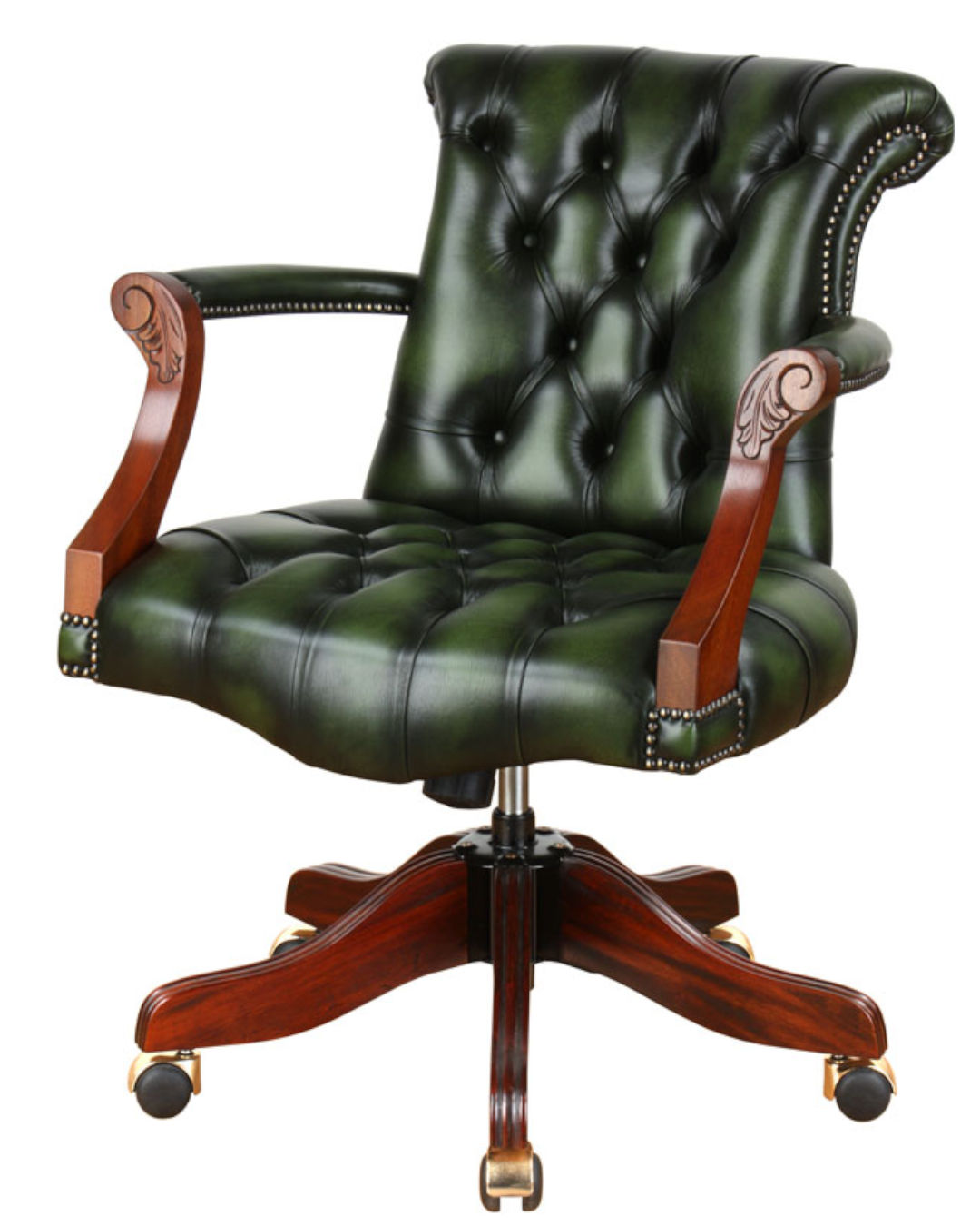 Der englische Admirals Chesterfield Büro-Stuhl mit edlem Holz in Leder Green