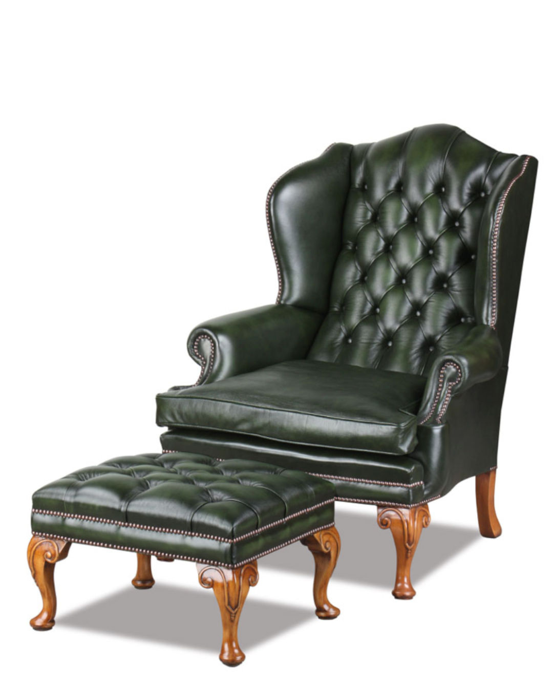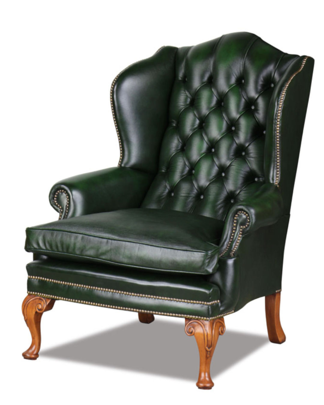 Der Empire Chesterfield Ohren-Sessel in Leder Green +Kissen