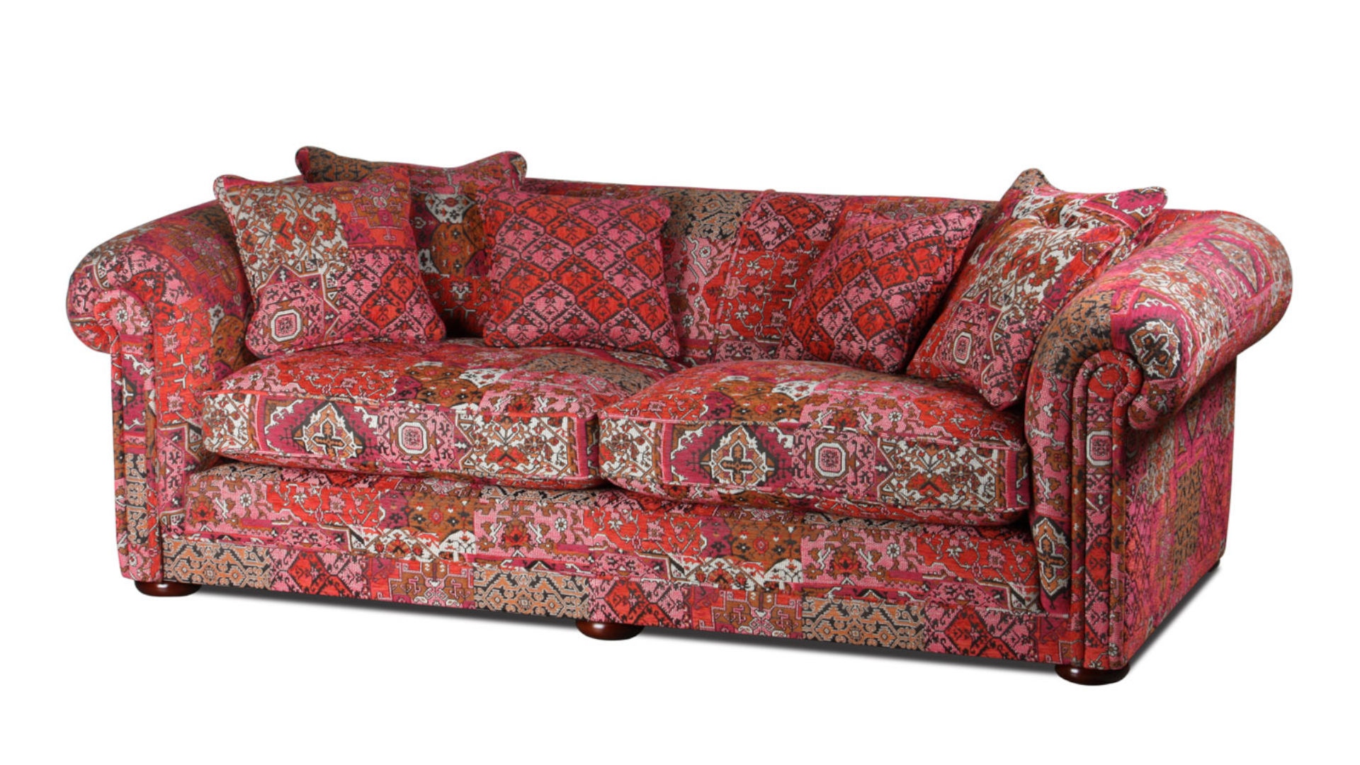 Das Metropolitan Sofa im Orientalstil und Stoff im rosa/roten Teppichmuster