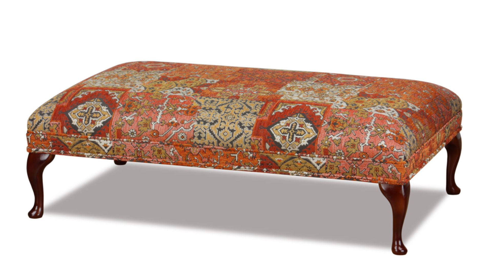 Queen Anne Stool (Fußhocker) mit Stoff im orangenen Teppichmuster (Alhambra Burnt Orange)