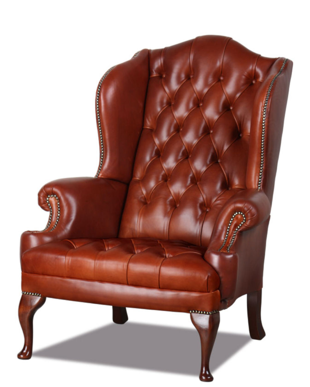 Der elegante Queen Anne Chesterfield Ohren-Sessel in Leder Cuba Tabac