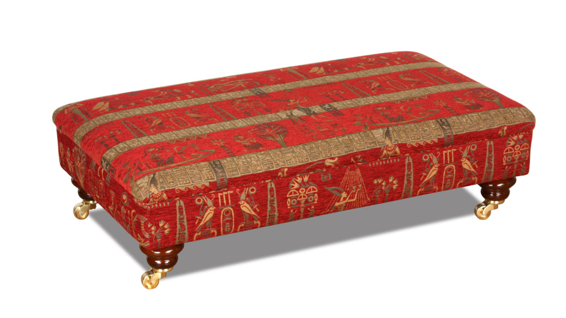 Ruskin Stool (Fuß-Hocker) mit Stoff im Ägyptischen Kolonialstil (Cleopatra Red)