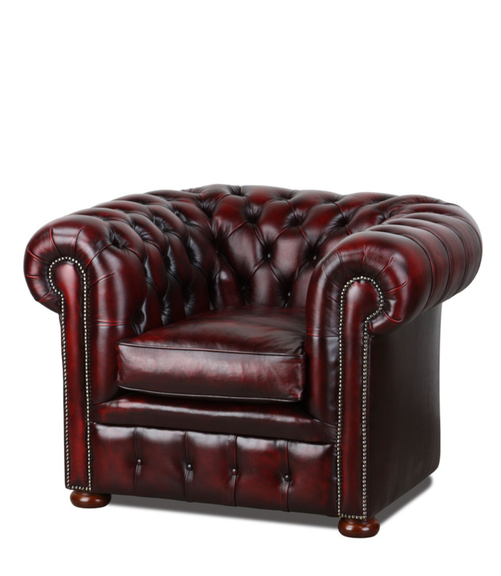Der Winchester Sessel ist ein traditionelles englisches Chesterfield-Möbelstück, handgefertigt in England. Das Buchenholz-Grundgestell und die gedrechselten Holzfüße garantieren Stabilität, während die filigrane Ziernagelung aus einzelnen Nägeln für luxuriöse Akzente sorgt. Sitzfläche wahlweise mit losen Kissen oder klassisch geknöpft, Sitzkissen aus Entenfedern oder synthetischem Material, Stahlwellen-Federkern für optimalen Komfort. Verfügbar in verschiedenen Leder- und Wischleder-Varianten. Hier mit Sitzkissen im Leder Red.