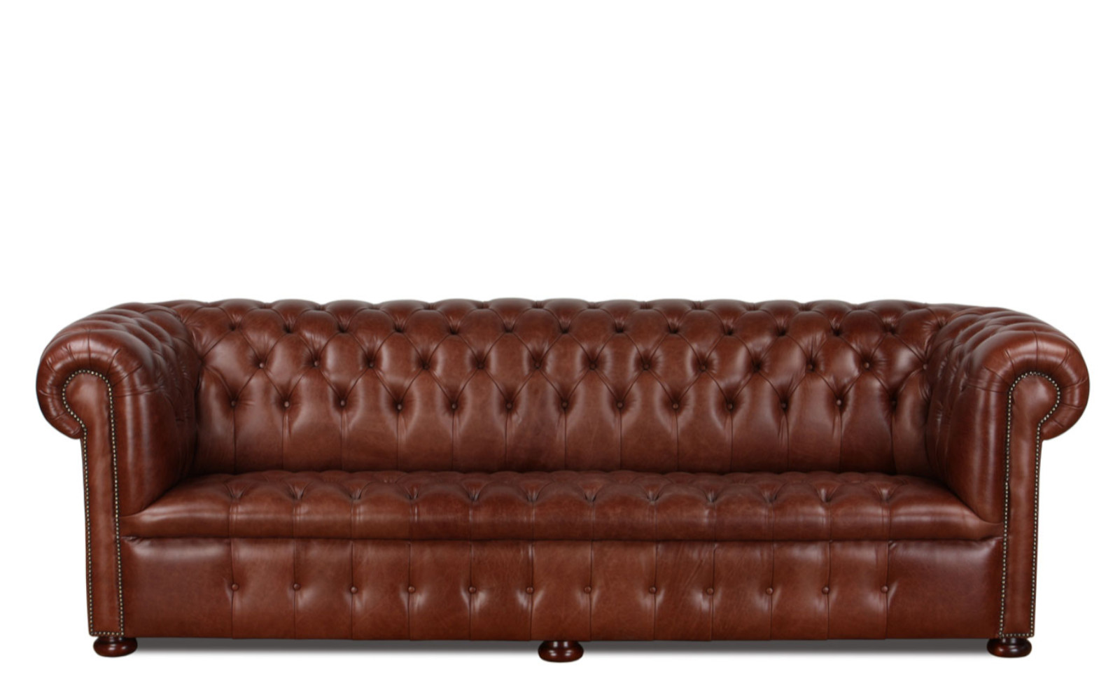 Das Winchester Chesterfield Sofa verbindet klassisches englisches Design mit traditioneller Handwerkskunst aus England. Das Buchenholz-Grundgestell sorgt für Stabilität, die gedrechselten Holzfüße und die detaillierte Ziernagelung aus einzelnen Nägeln verleihen edlen Charakter. Wählen Sie zwischen Sitzkissen oder geknöpfter Sitzfläche, die Kissenfüllung aus Entenfedern oder hochwertigem synthetischem Material zusammen mit dem Stahlwellen-Federkern garantiert perfekten Komfort. In verschiedenen Leder- und Wischlederfarben erhältlich. Hier ohne Sitzkissen im Leder Old English Hazel.